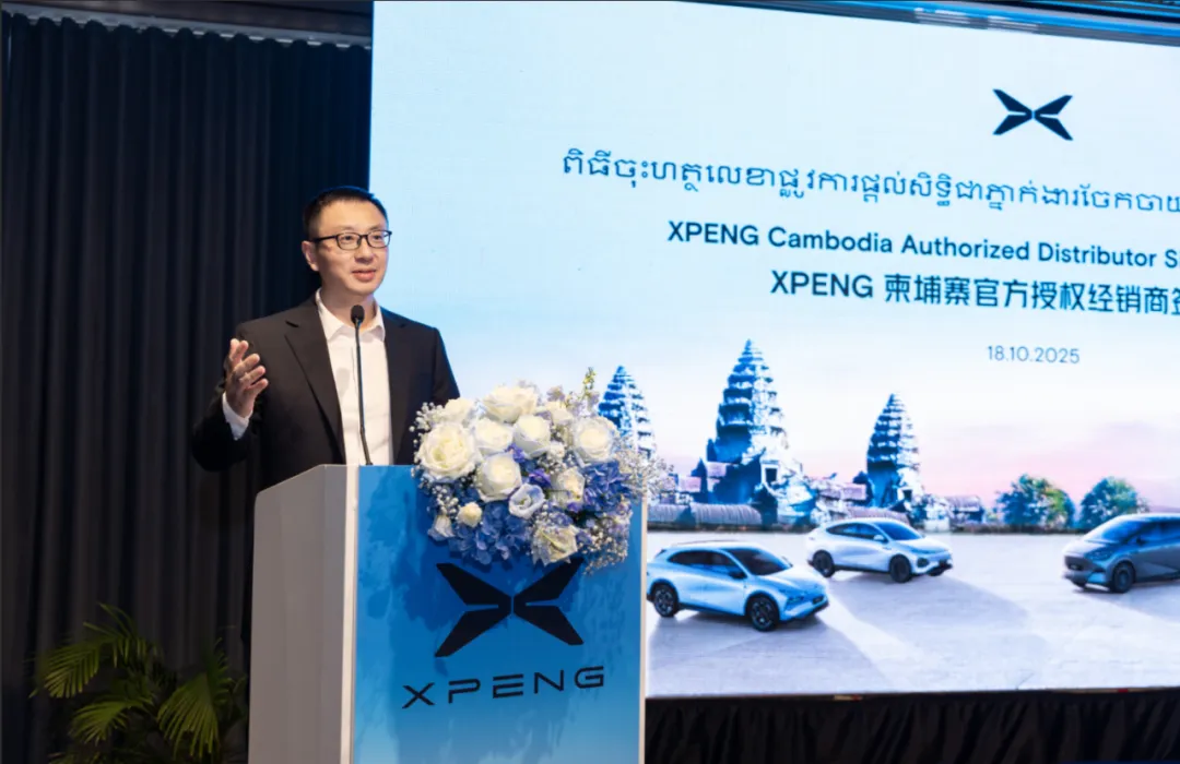 2025年10月18日,柬埔寨金边——NSPENG AUTOMOBILE IMPORT AND EXPORT CO., LTD.(简称NSPENG柬埔寨)举行小鹏汽车官方授权签约仪式,正式成为小鹏汽车在柬埔寨的官方独家经销商。小鹏汽车亚太区负责人张婕、南菱汽车董事长马春欣携高管团队、柬埔寨SDB集团董事长张红军,及柬埔寨各界嘉宾共同出席活动。