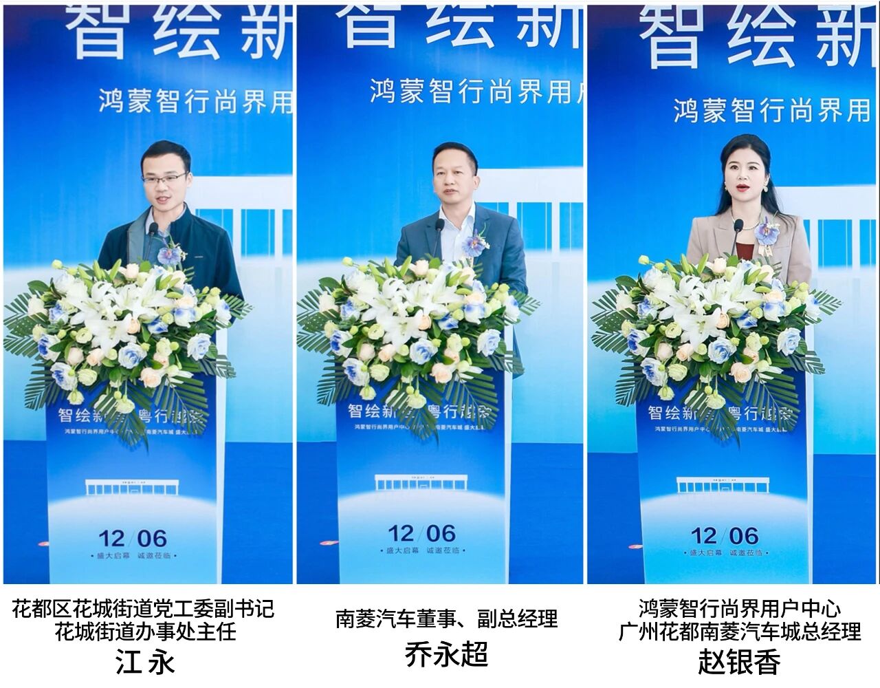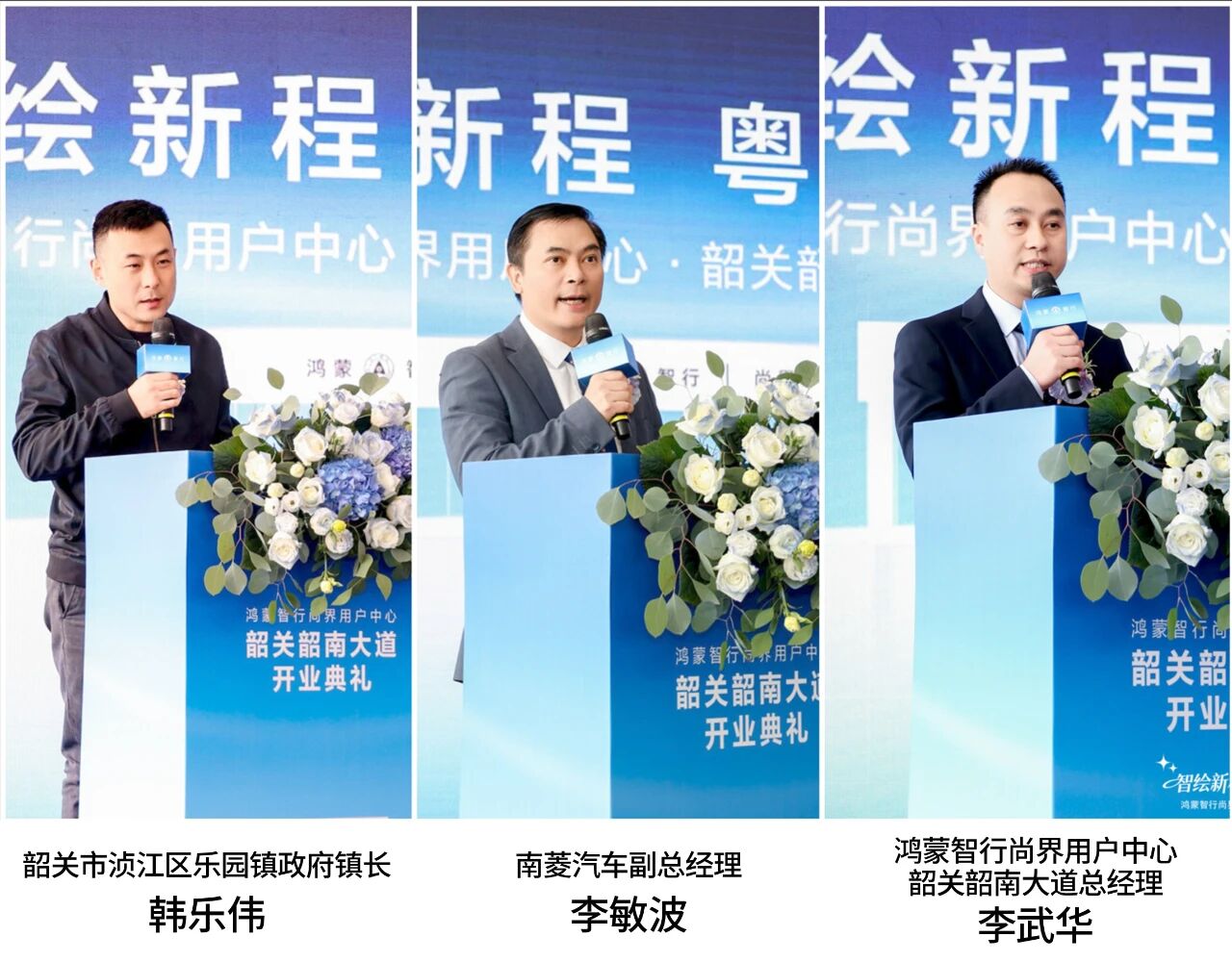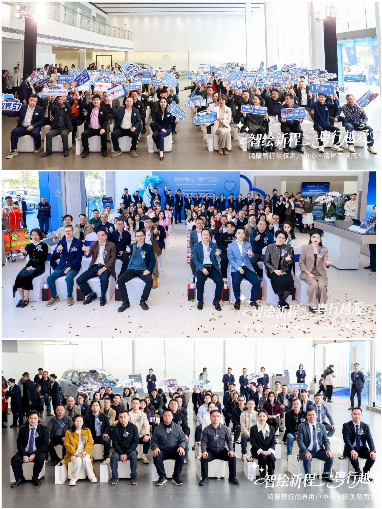 开业当天,广州花都、清远、韶关三地,来自鸿蒙智行生态及终端业务合作伙伴代表、三地相关部门领导、广东省汽车流通协会领导,以及各地商协会、保险公司及银行机构合作伙伴、各地媒体及车主代表等纷纷到场,共同见证这一重要时刻。