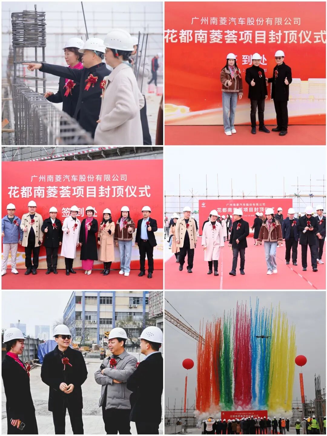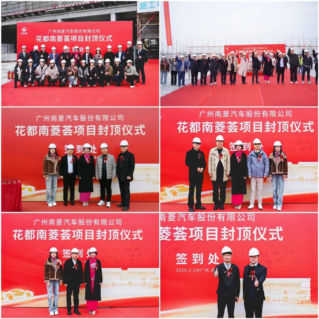 2026年1月24日,由南菱汽车投资建设的花都南菱荟项目隆重举行封顶仪式。花城街道办党工委书记黄俊杰、花都区妇联主席张健,以及花都区政府部门代表、行业协会嘉宾、产业链合作伙伴与南菱汽车董事长马春欣、董事兼副总经理乔永超等高管团队、项目建设团队共同出席,见证了这一重要时刻。